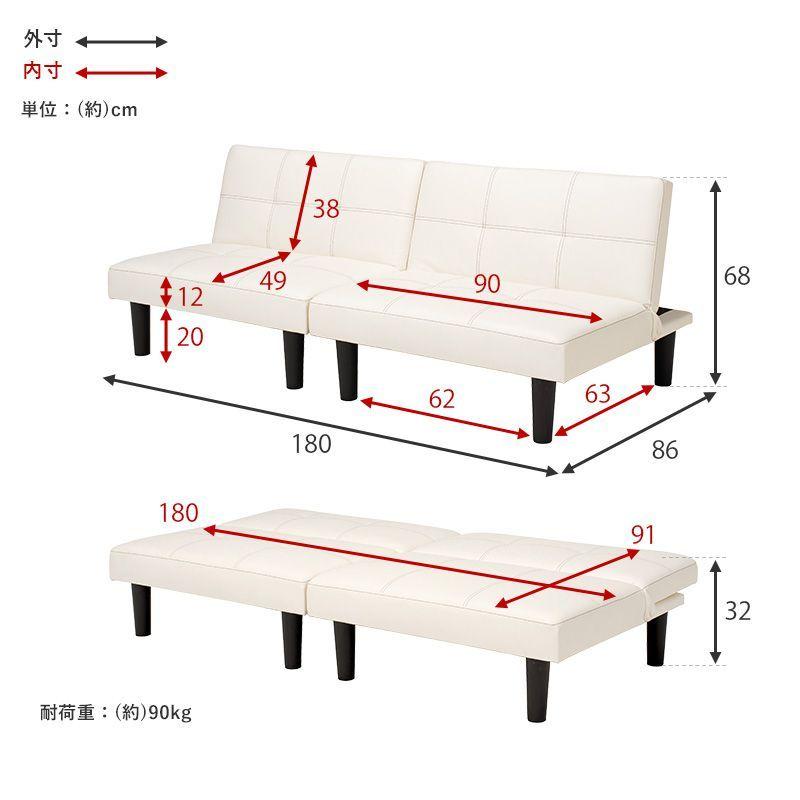 セミダブルのベッド1台と、ソファーベッド(シングルサイズ 長さ180センチ)1台